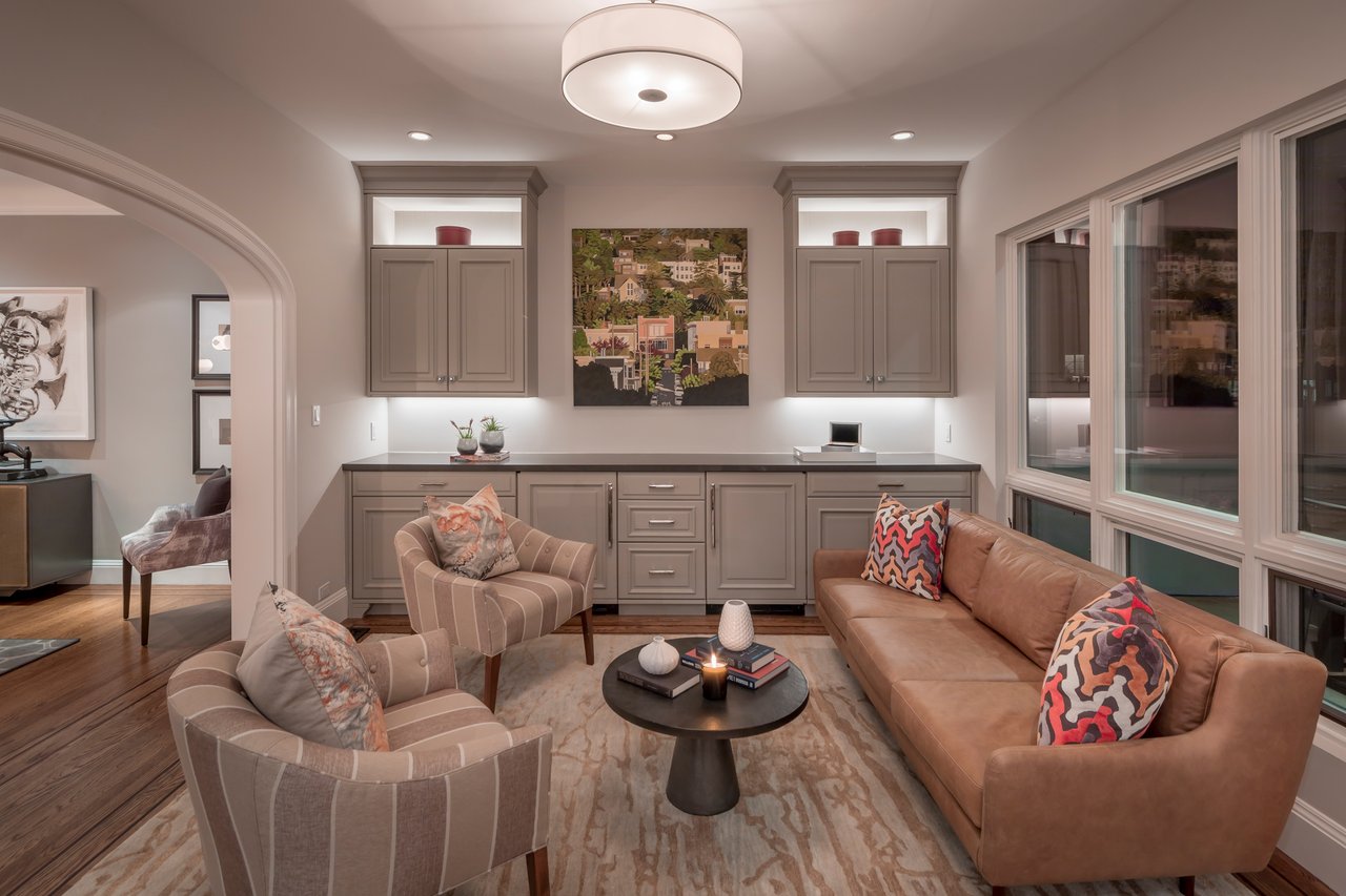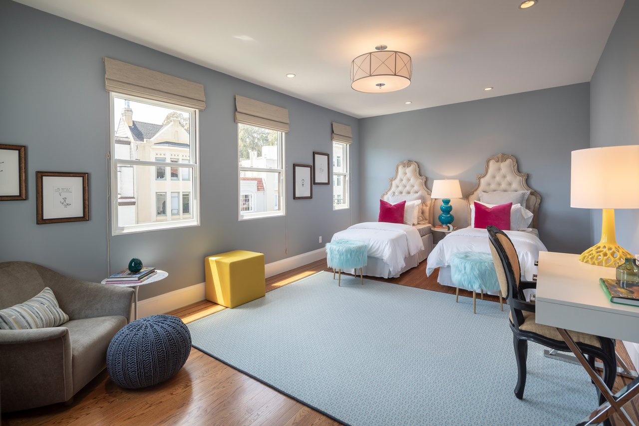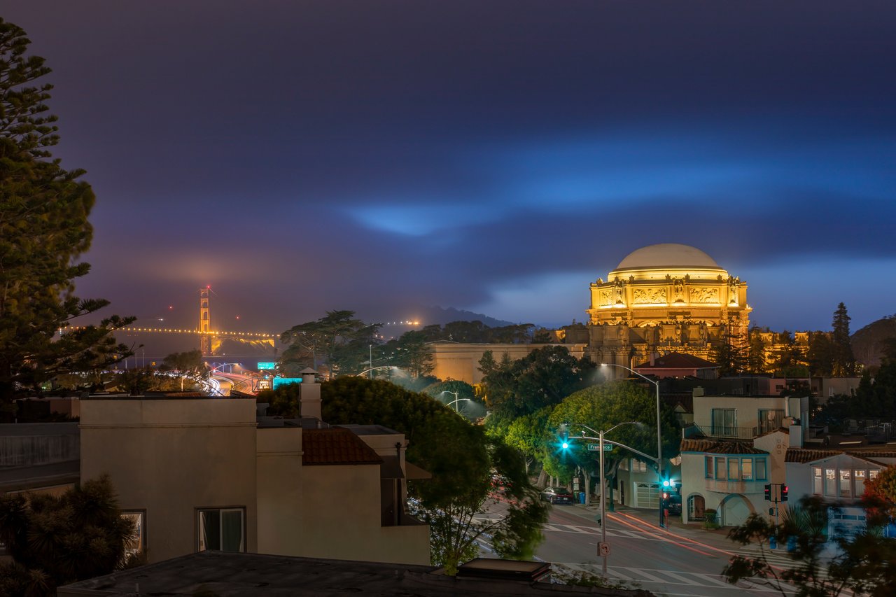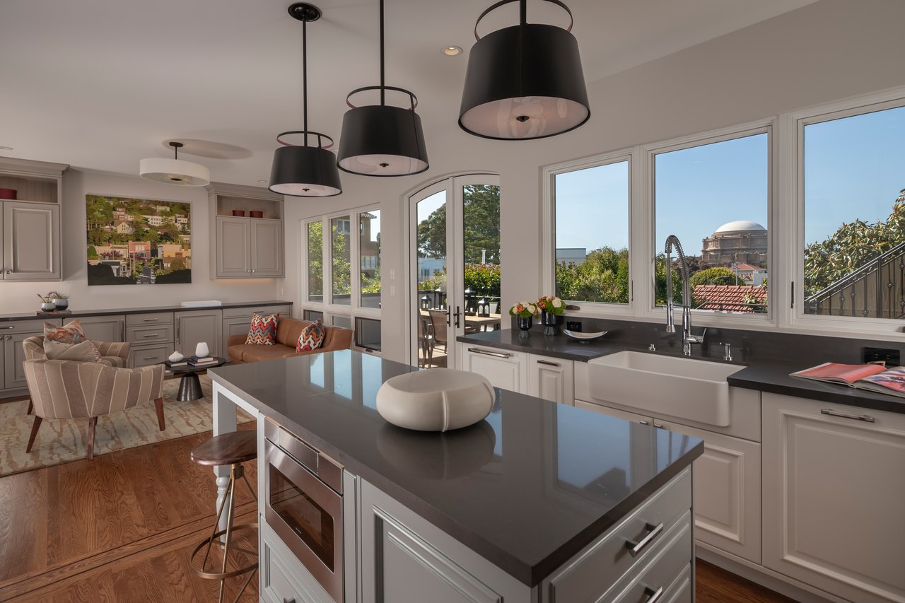 This stunning 5-bedroom, 4.5-bath Cow Hollow single-family home offers exceptional construction quality, remarkable quiet, and sweeping San Francisco views—including the Palace of Fine Arts and the Golden Gate Bridge. The newly renovated chef’s kitchen features a Wolf gas range, dual Thermador ovens, a large island with seating, and an adjacent family room complete with a wet bar, wine cooler, and beverage center. The kitchen and family room open seamlessly onto an expansive sun deck with a plumbed gas grill, perfect for indoor-outdoor entertaining.