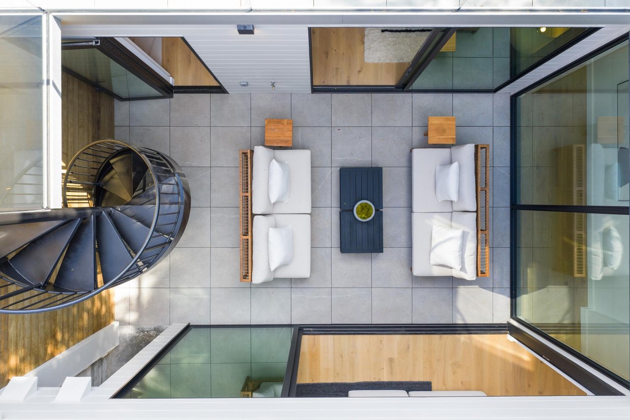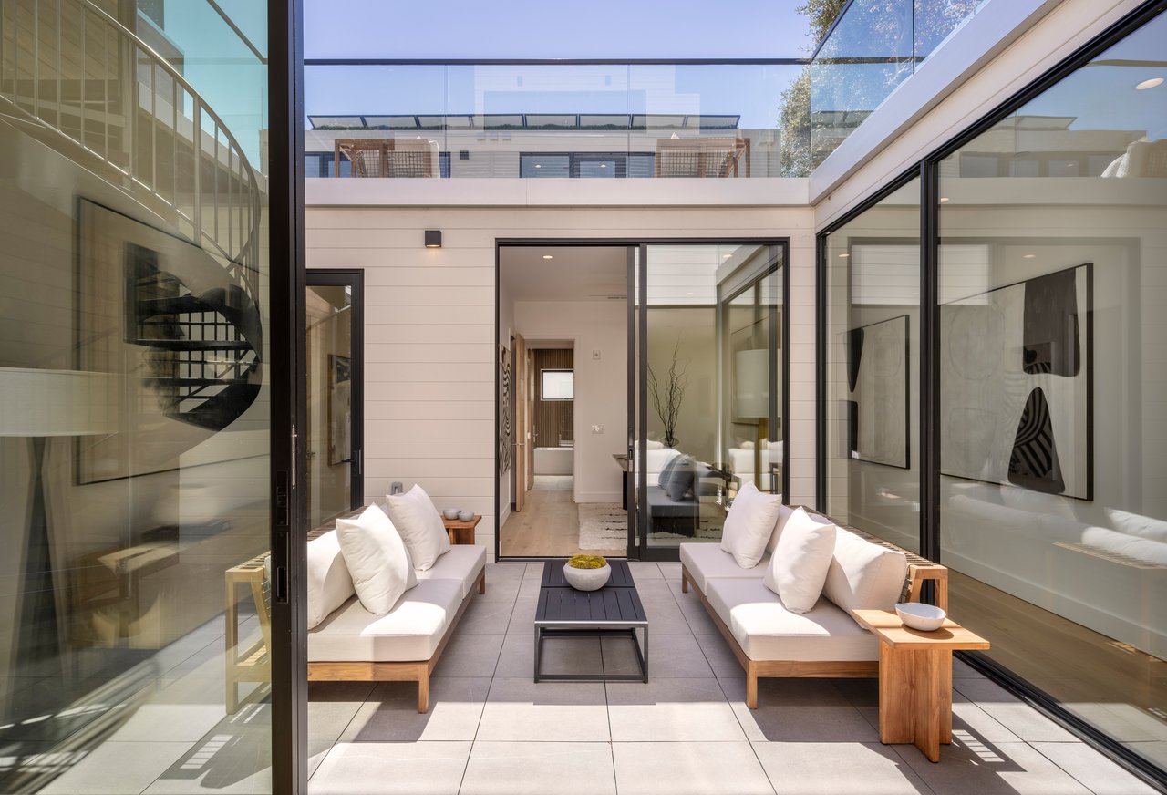 Atrium is the largest of the three newly-renovated residences at Sol de Dolores—a two-story sanctuary centered around a stunning open-air light court that delivers blue skies and sunlight directly to the heart of this immaculate residence. Defined by its floor-to-ceiling glass sliders and sheltered outdoor living experience, the Atrium architecturally anchors the space, providing a natural extension of the living area and a visual focal point sure to wow.